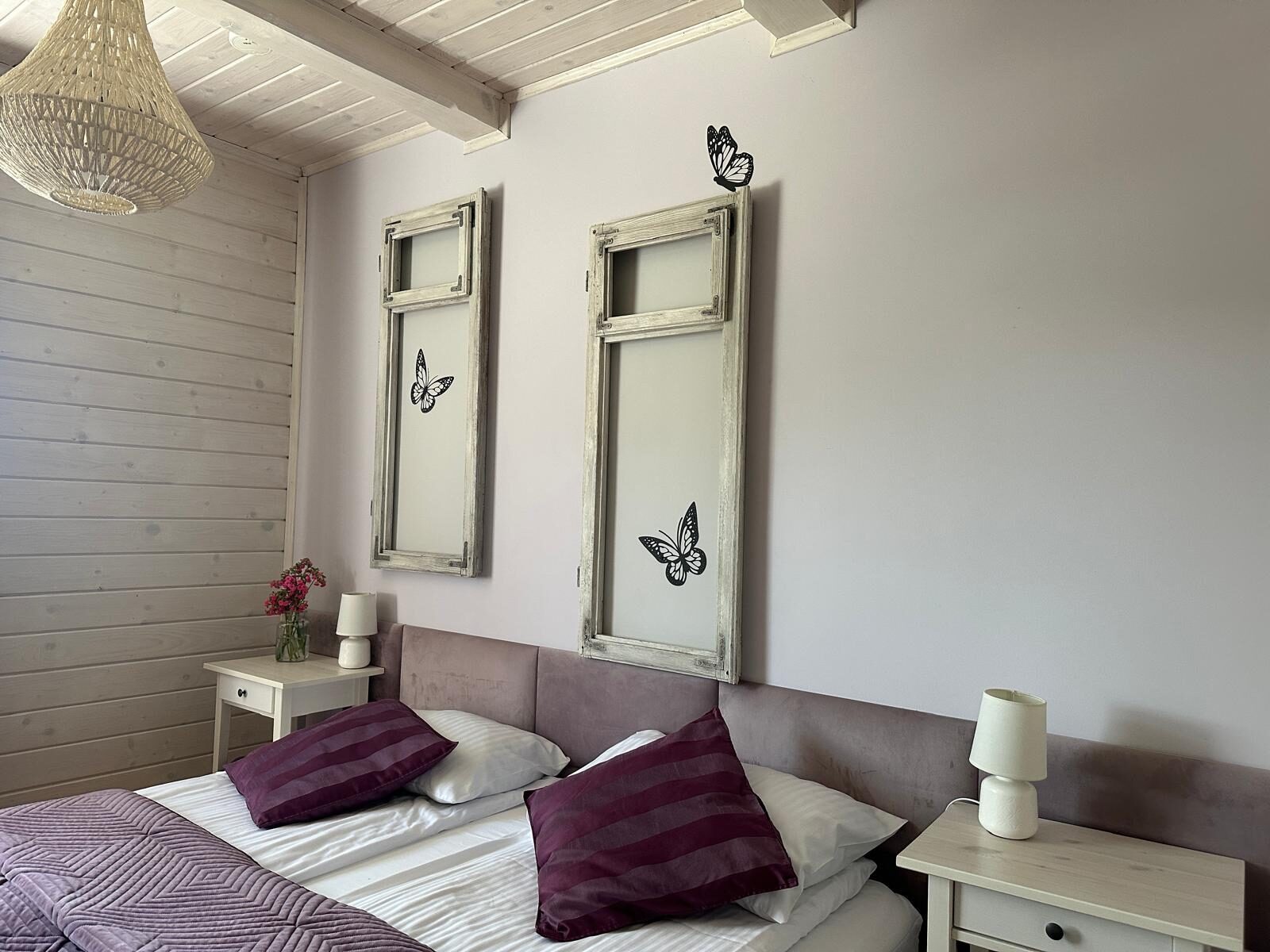 „ Motyle” to możliwość zakwaterowania maksymalnie 2 osób – podwójne lub pojedyncze łóżka, bez możliwości wstawienia dostawki lub zakwaterowania dziecka w łóżku z rodzicami.